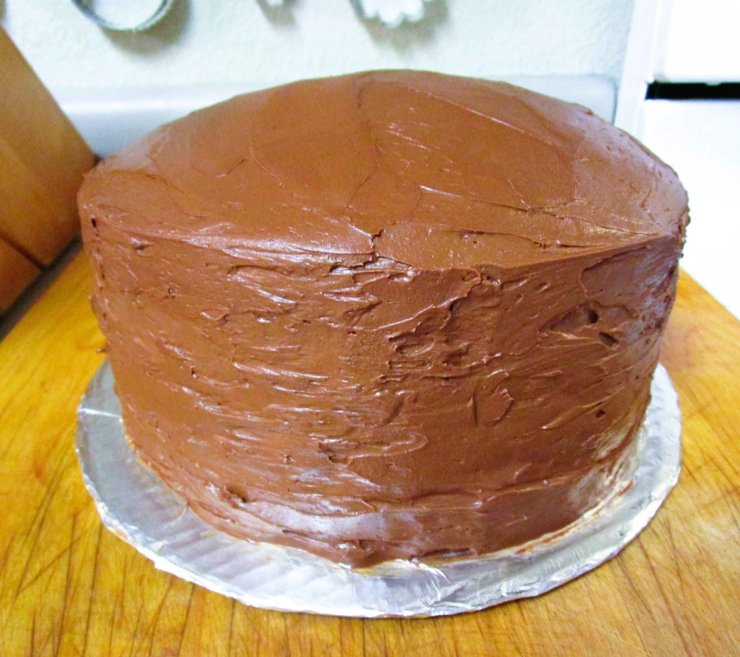 - Bake at 350 degrees until cake tests done, about 35 to 40 minutes. Cool. Split each layer into 2 layers. Spread "Sweetened Whipped Cream" between layers. Finish with "Milk Chocolate Icing". Cake will keep in refrigerator 2 to 3 days.