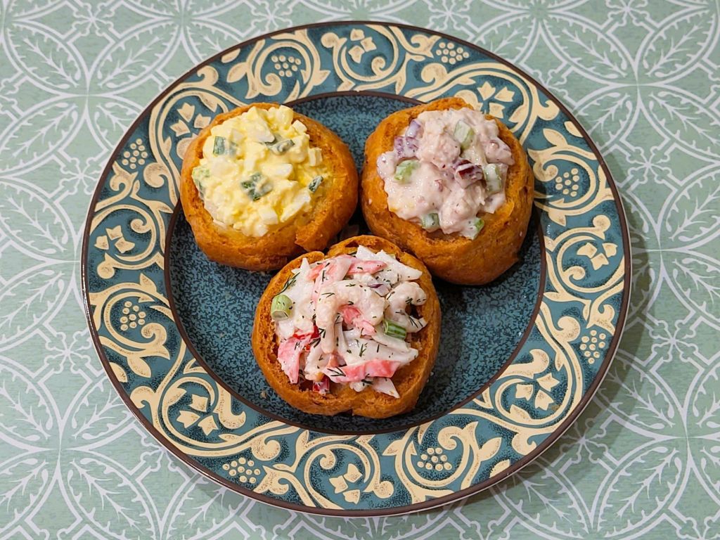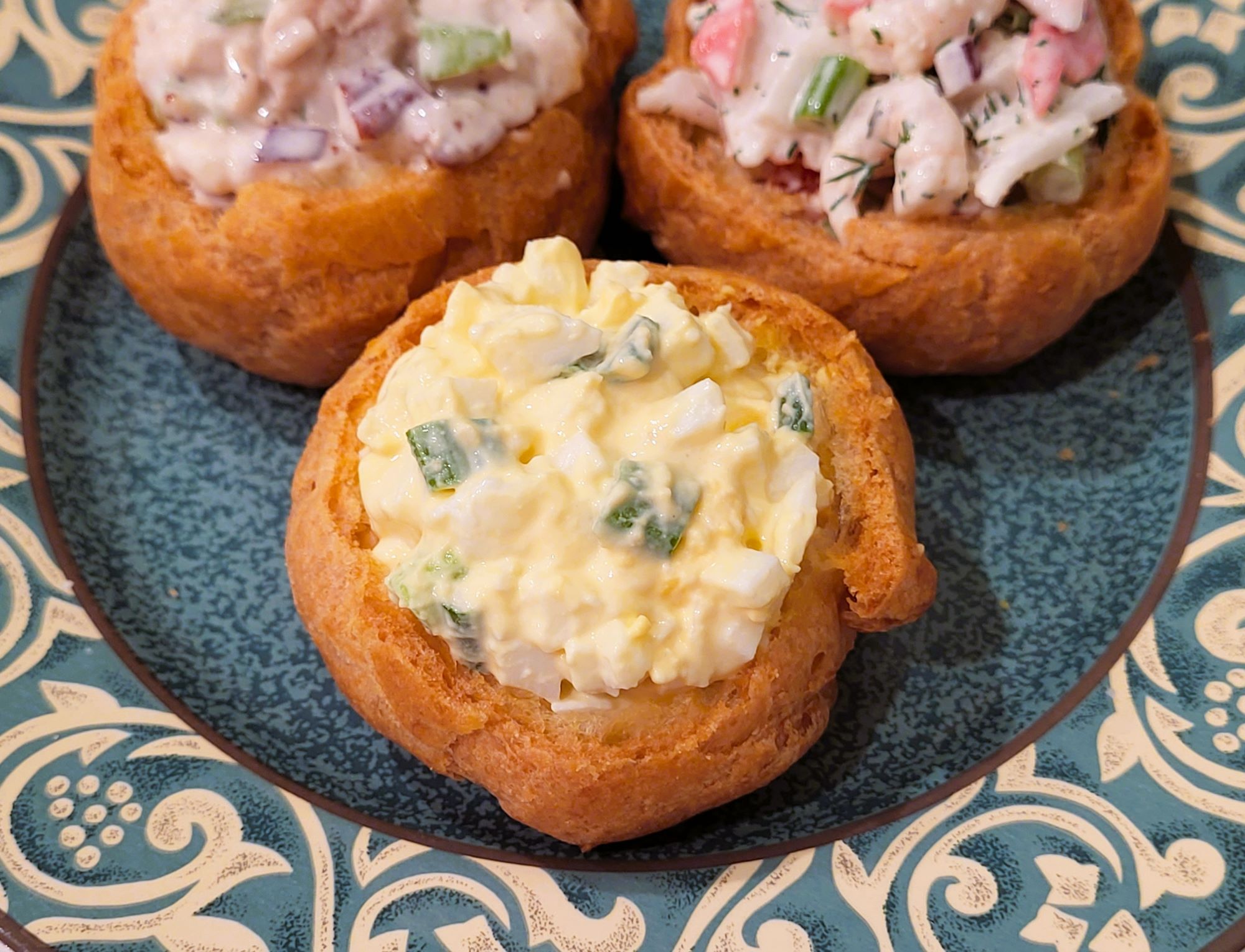- Over-fill shell with salad and replace top so that filling can still be seen in the middle of the puff.