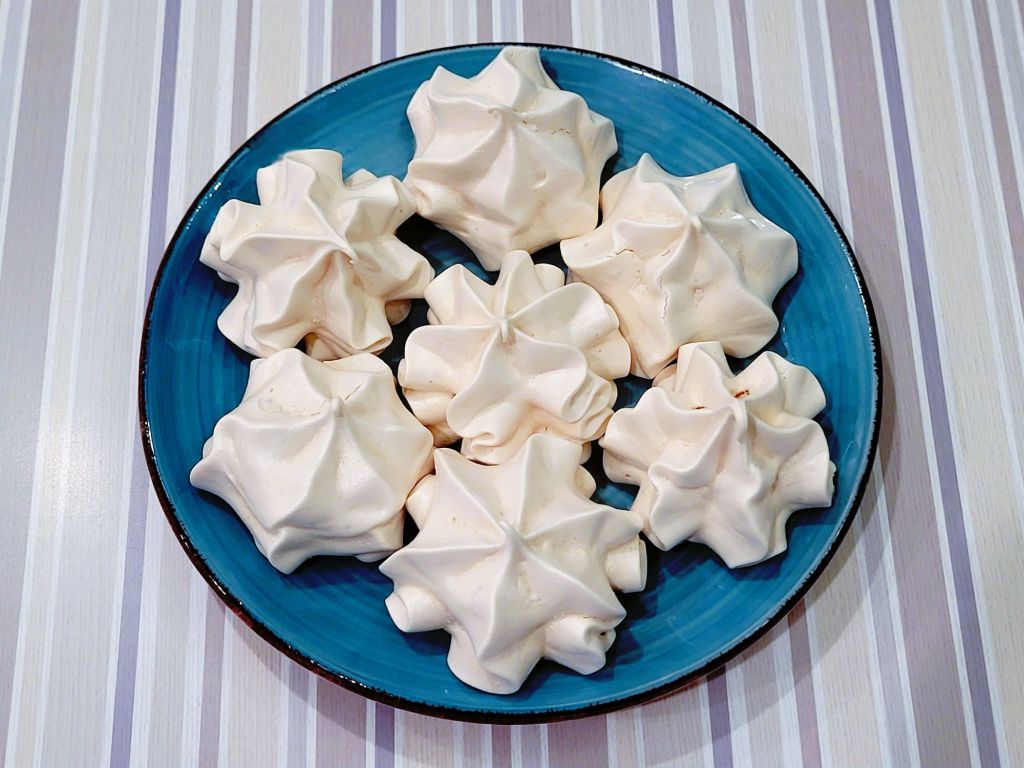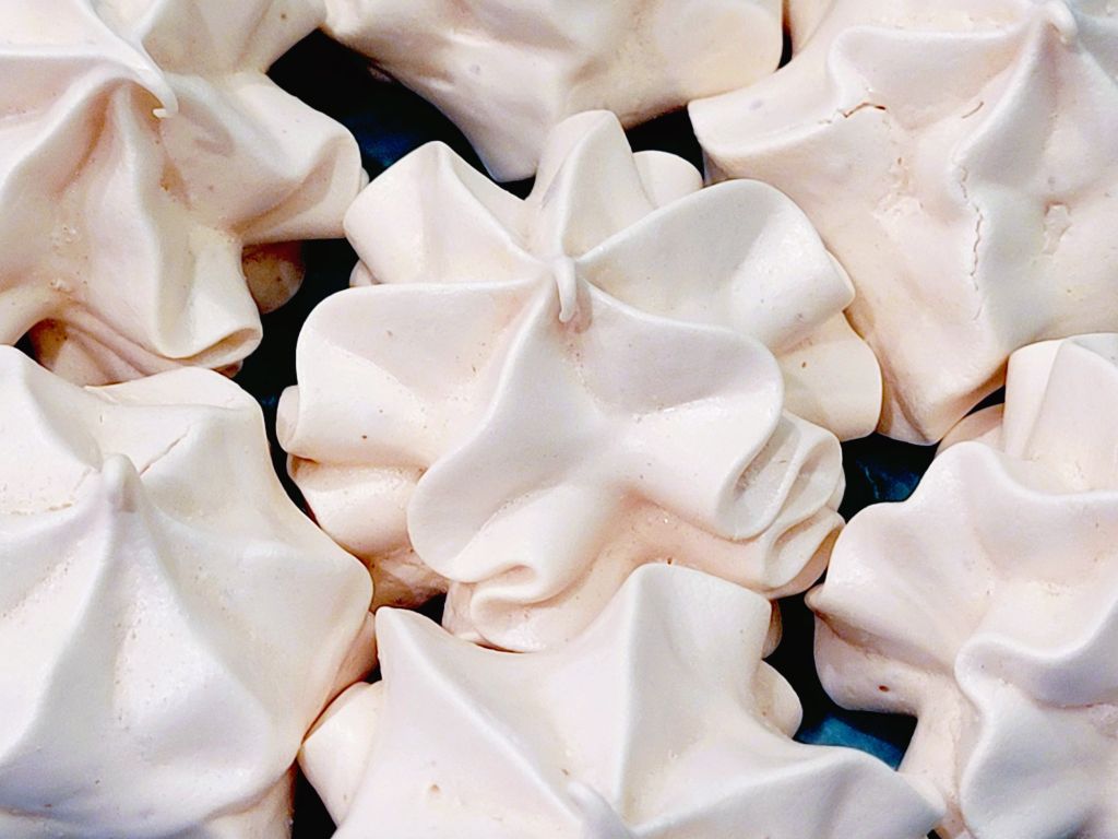 - Spoon into pastry bag fitted with a large star tip. Pipe egg whites onto baking sheet. Bake for 2 hours. Turn off oven and let cool in closed oven for 3 to 4 hours. Remove from parchment paper with spatula and store in an air tight container.