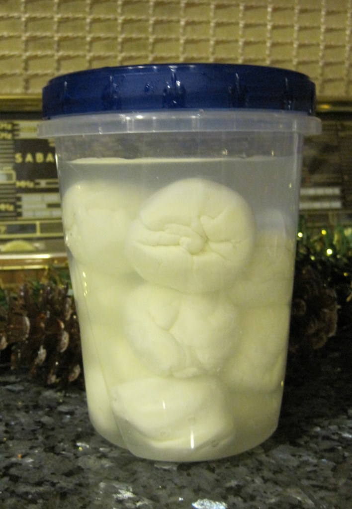 “My Mom and I made our first Mozzarella in December of 2009. It’s a bit tricky, and we can still use some practice. But still came out pretty good and we enjoyed both it and the experience! We used the microwave method, but I think next time I would go the traditional route for a little better flavor and texture.” – April Ferre